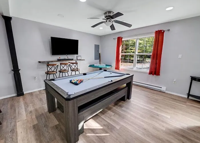 **Welcome to Horatio Hideaway Pocono Escape**, a serene retreat nestled in the heart of Tobyhanna, where tranquility meets luxury. This charming escape is designed for those seeking an intimate getaway, positioned just 60 km from Wilkes-Barre/Scranton International Airport, making it easily accessible for travelers looking to unwind in nature's embrace. Surrounded by the stunning scenery of the Pocono Mountains, guests can immerse themselves in both luxury and outdoor adventure.